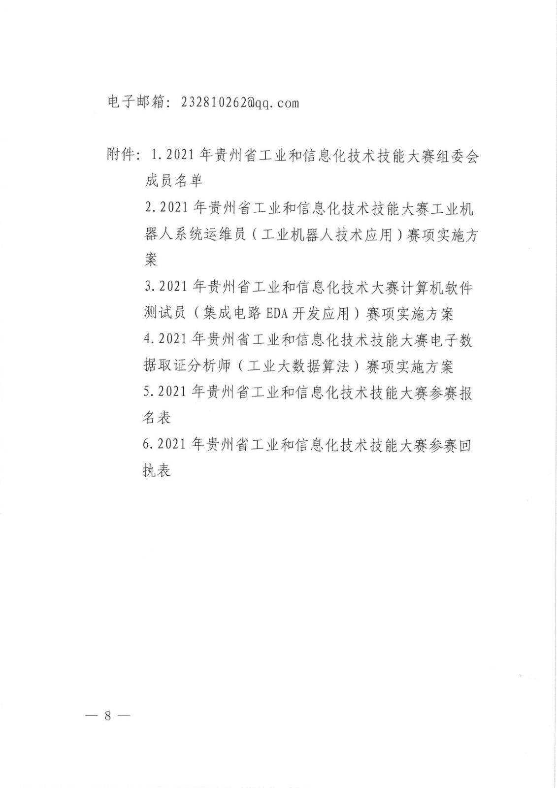 貴州省工業(yè)和信息化廳 省人力資源社會保障廳 省教育廳 省總工會 團省委關(guān)于舉辦2021年貴州省工業(yè)和信息化技術(shù)技能大賽的通知