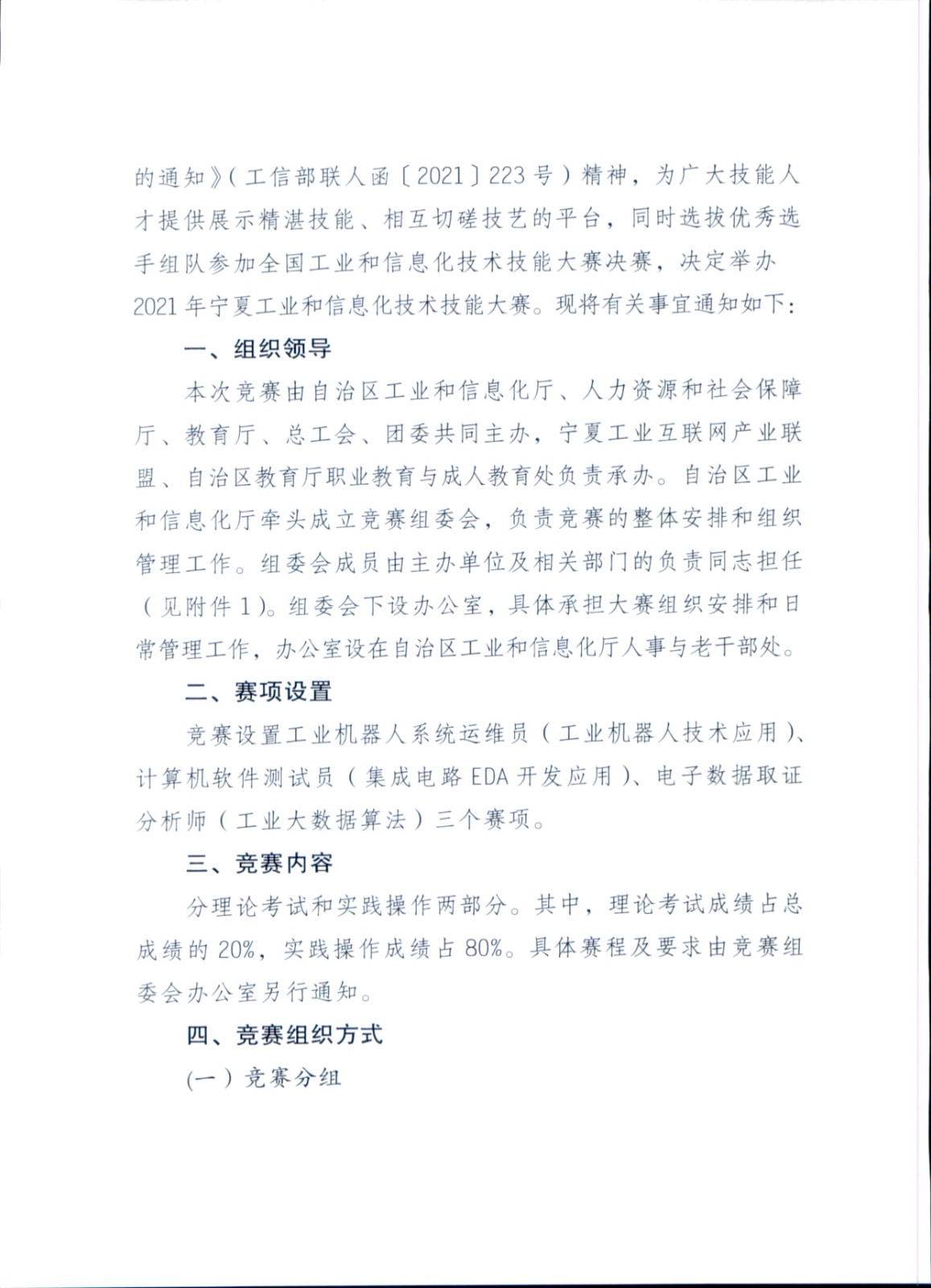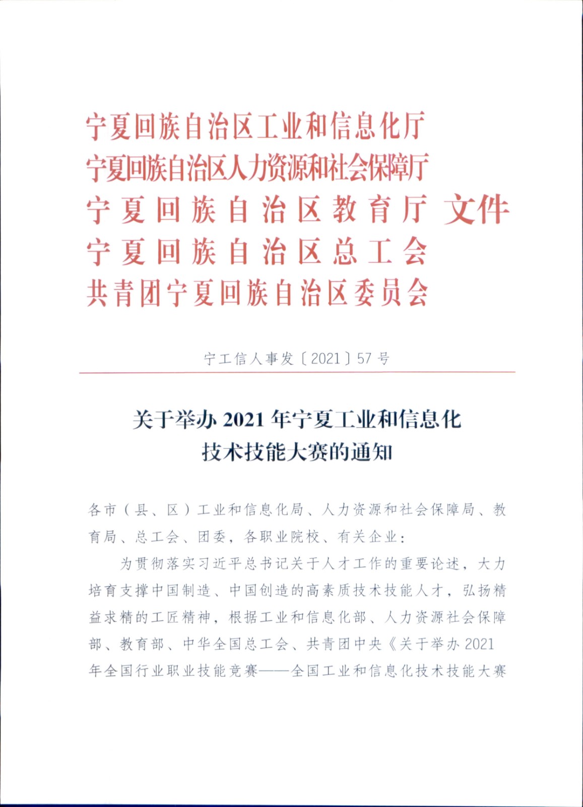 關于舉辦2021年寧夏工業(yè)和信息化技術技能大賽的通知