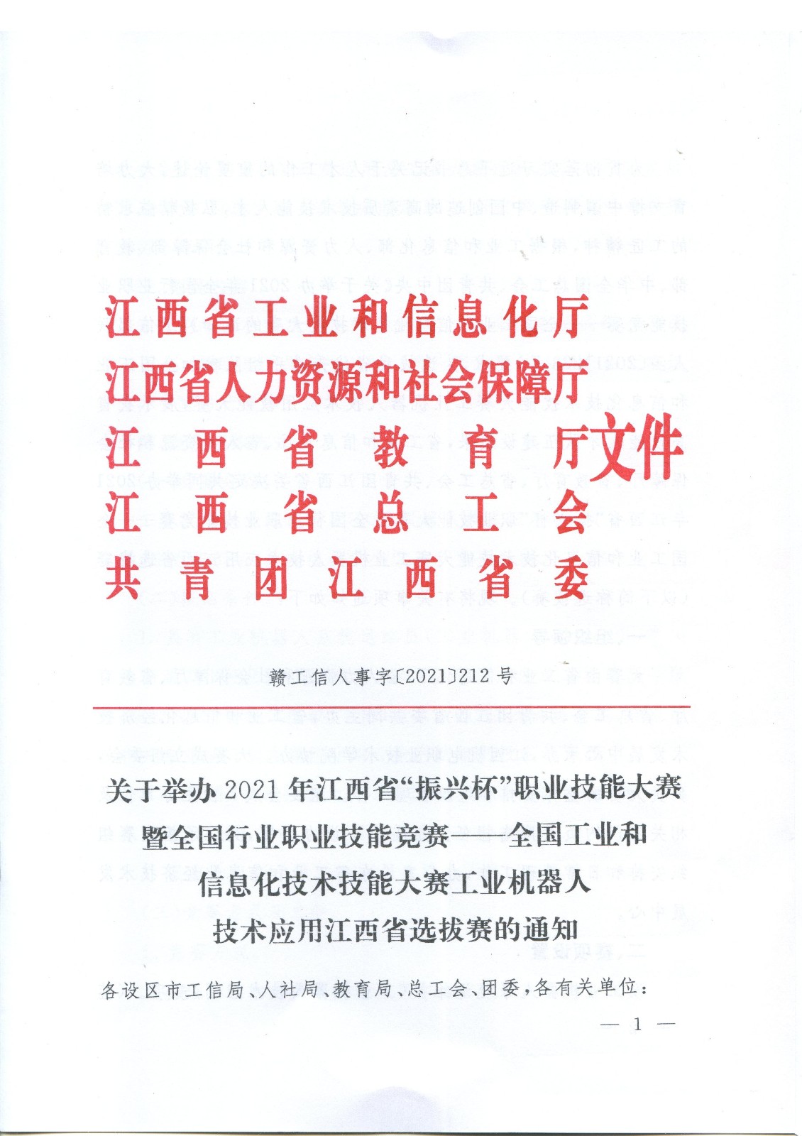 2021全國工業(yè)和信息化技術技能大賽工業(yè)機器人技術應用江西省選拔賽通知