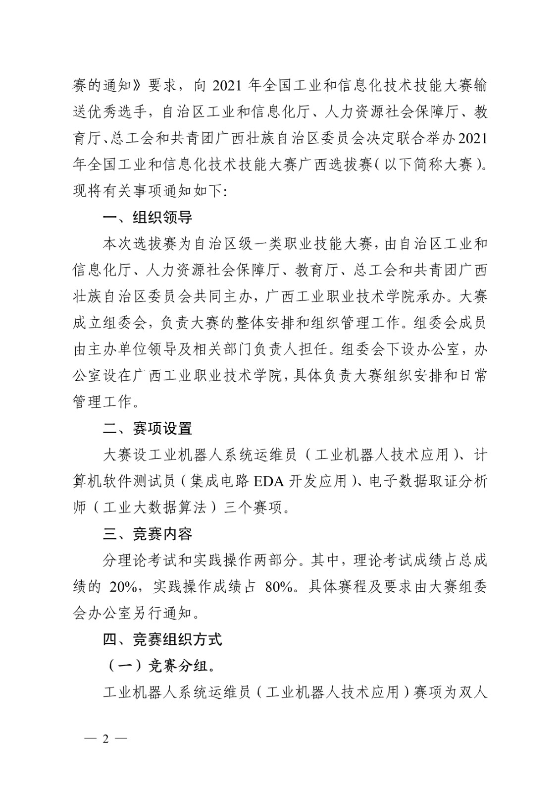 2021年全國(guó)工業(yè)和信息化技術(shù)技能大賽廣西選拔賽通知