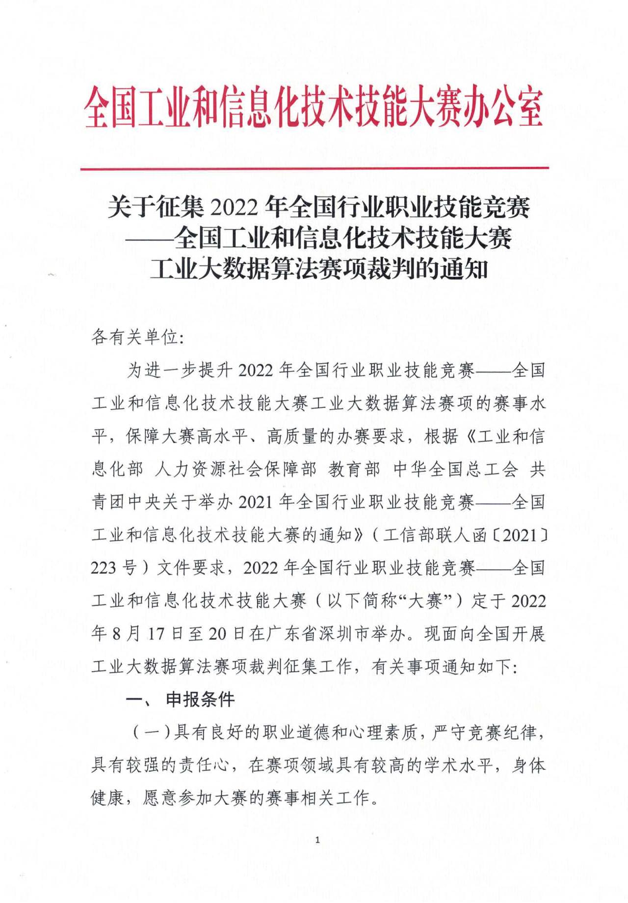 關(guān)于征集全國(guó)工業(yè)和信息化技術(shù)技能大賽工業(yè)大數(shù)據(jù)算法賽項(xiàng)裁判的通知.pdf