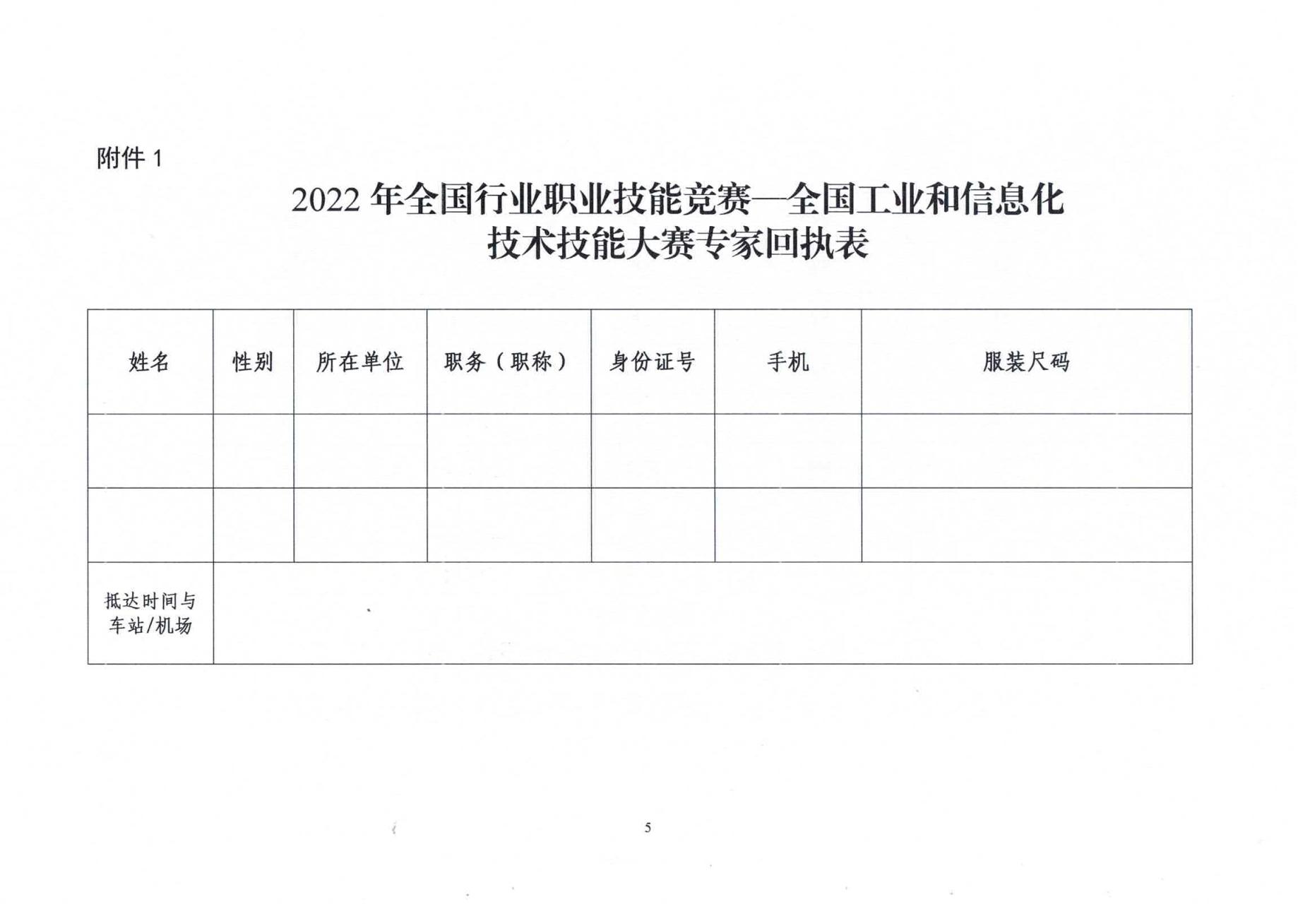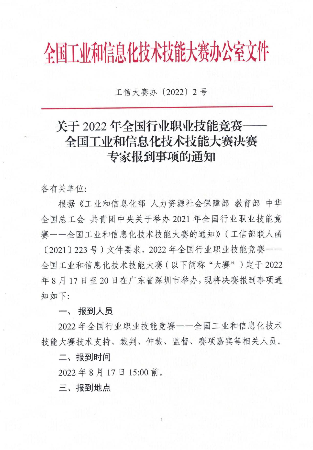 關(guān)于全國工業(yè)和信息化技術(shù)技能大賽決賽專家報到事項的通知