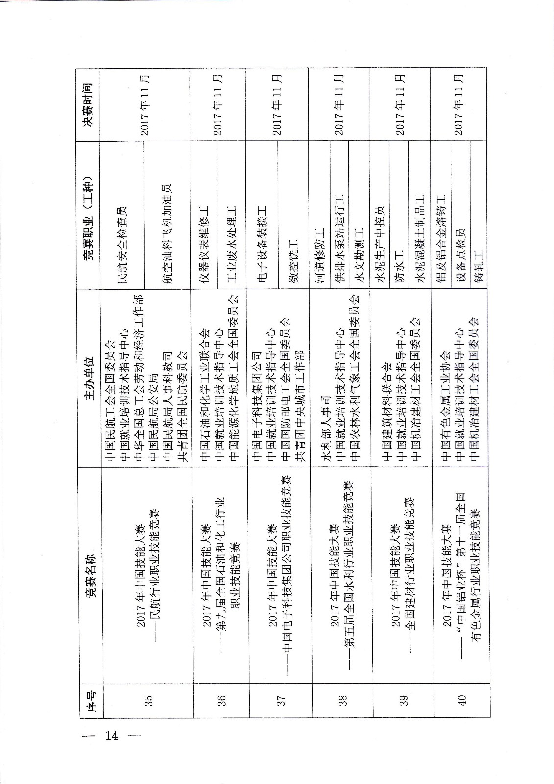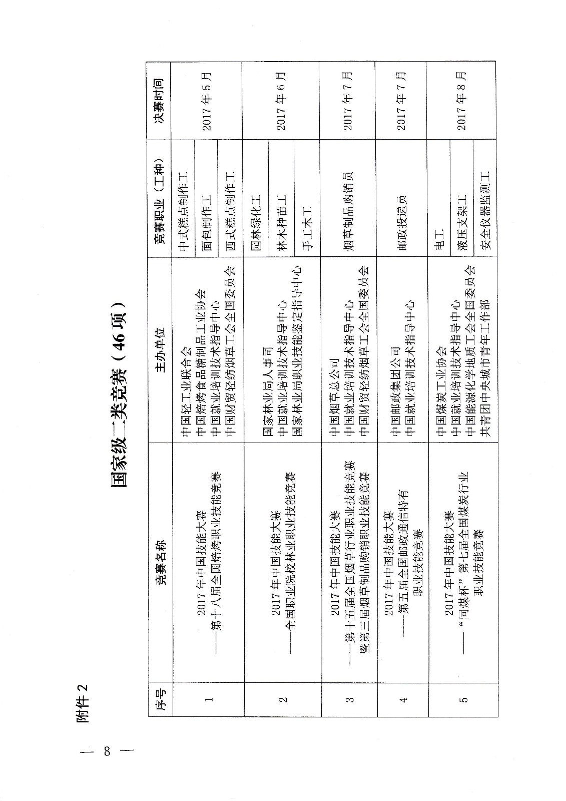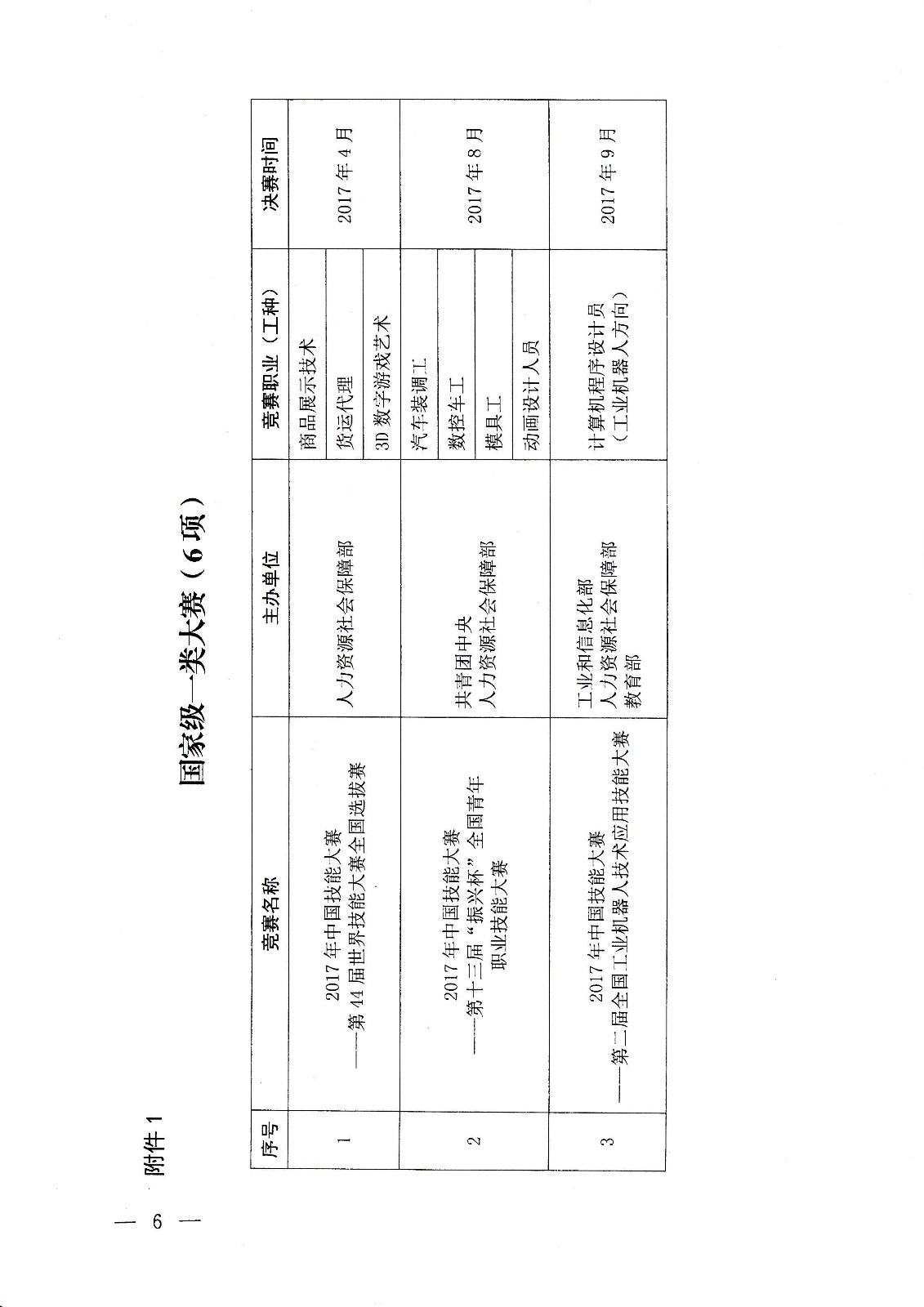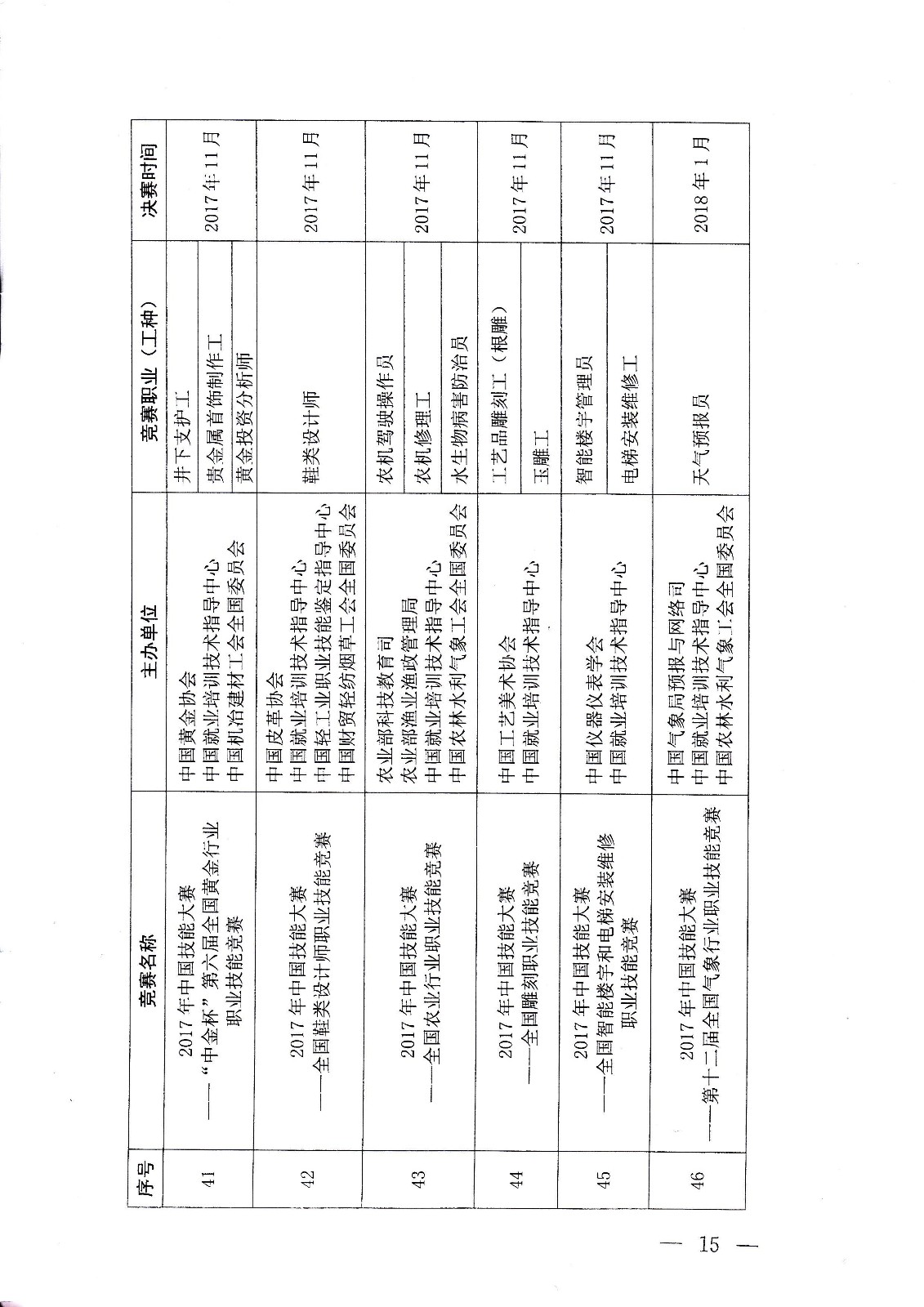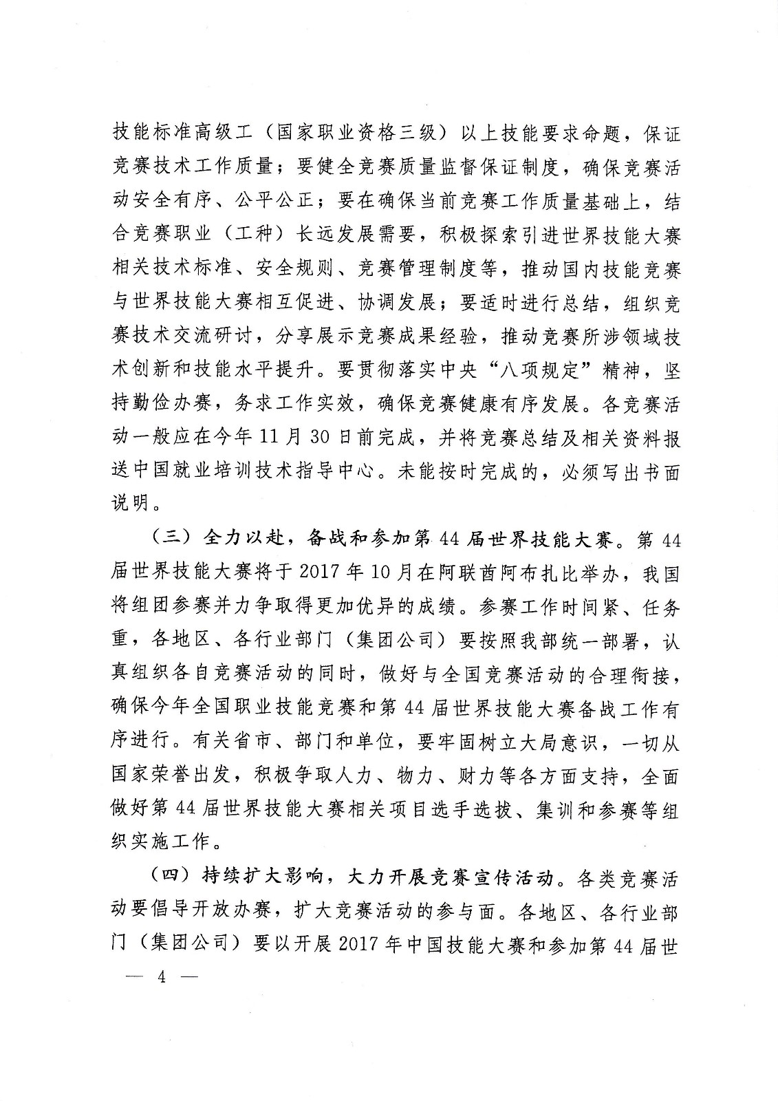 人社部函[2017]46號 人力資源社會保障部關(guān)于組織開展2017年中國技能大賽的通知.pdf