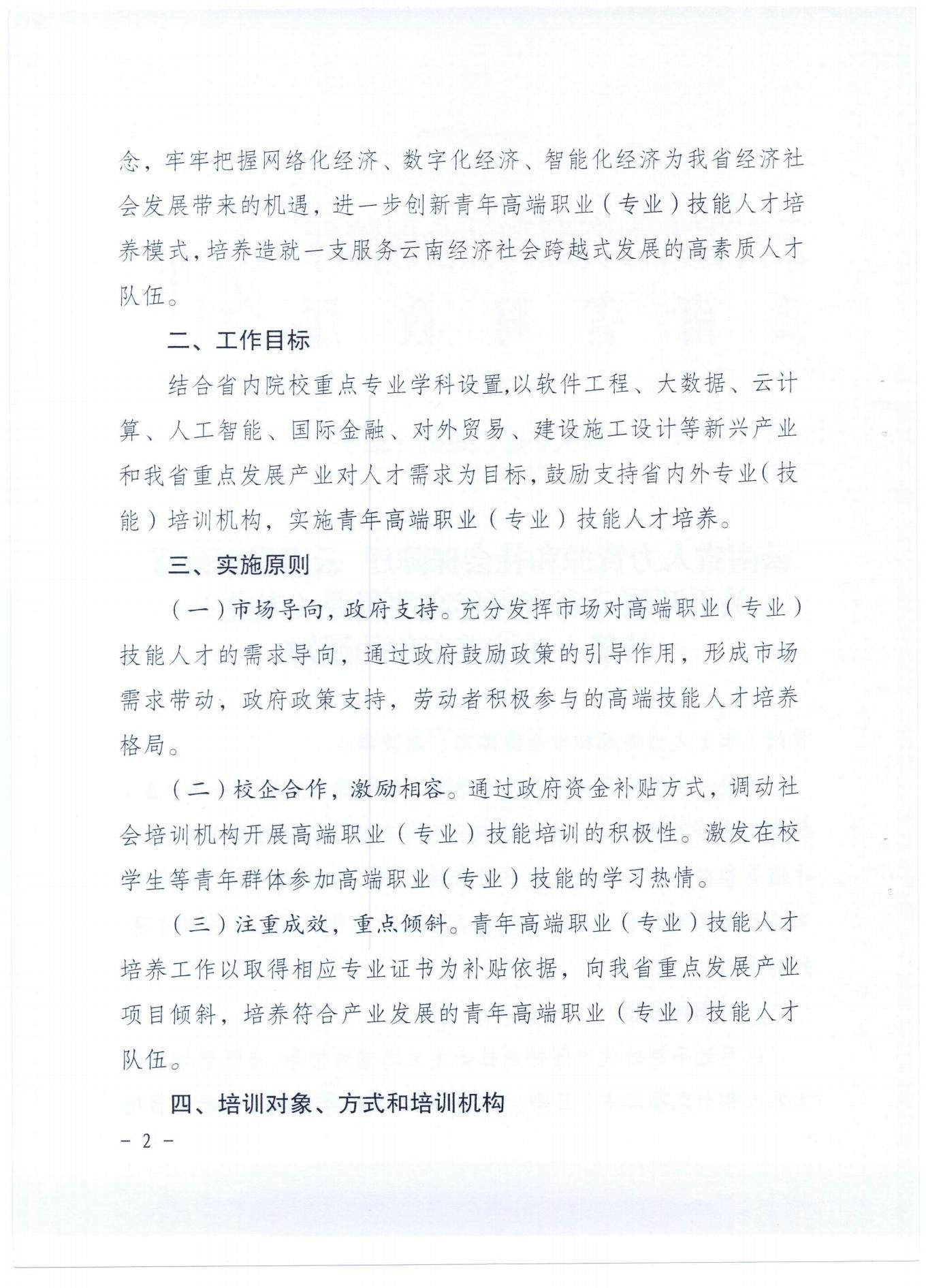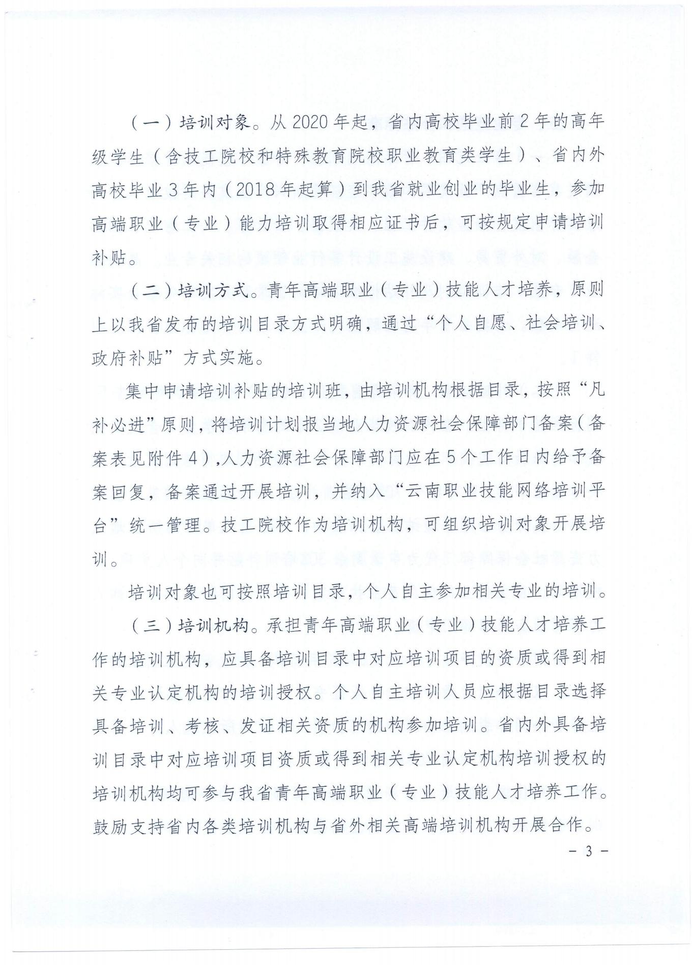 云南省人力資源和社會保障廳 云南省財政廳關于開展云南省青年高端職業(yè)(專業(yè))技能人才培養(yǎng)工作的通知