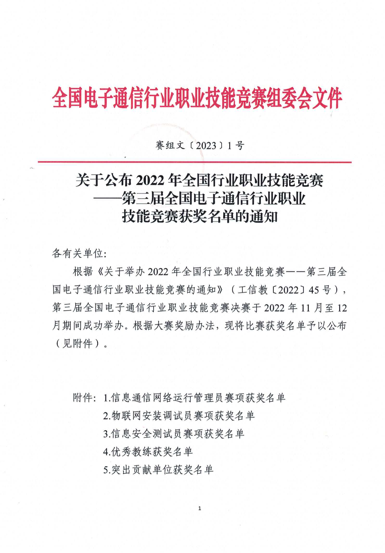 關(guān)于公布2022年全國(guó)行業(yè)職業(yè)技能競(jìng)賽——第三屆全國(guó)電子通信行業(yè)職業(yè)技能競(jìng)賽獲獎(jiǎng)名單的通知