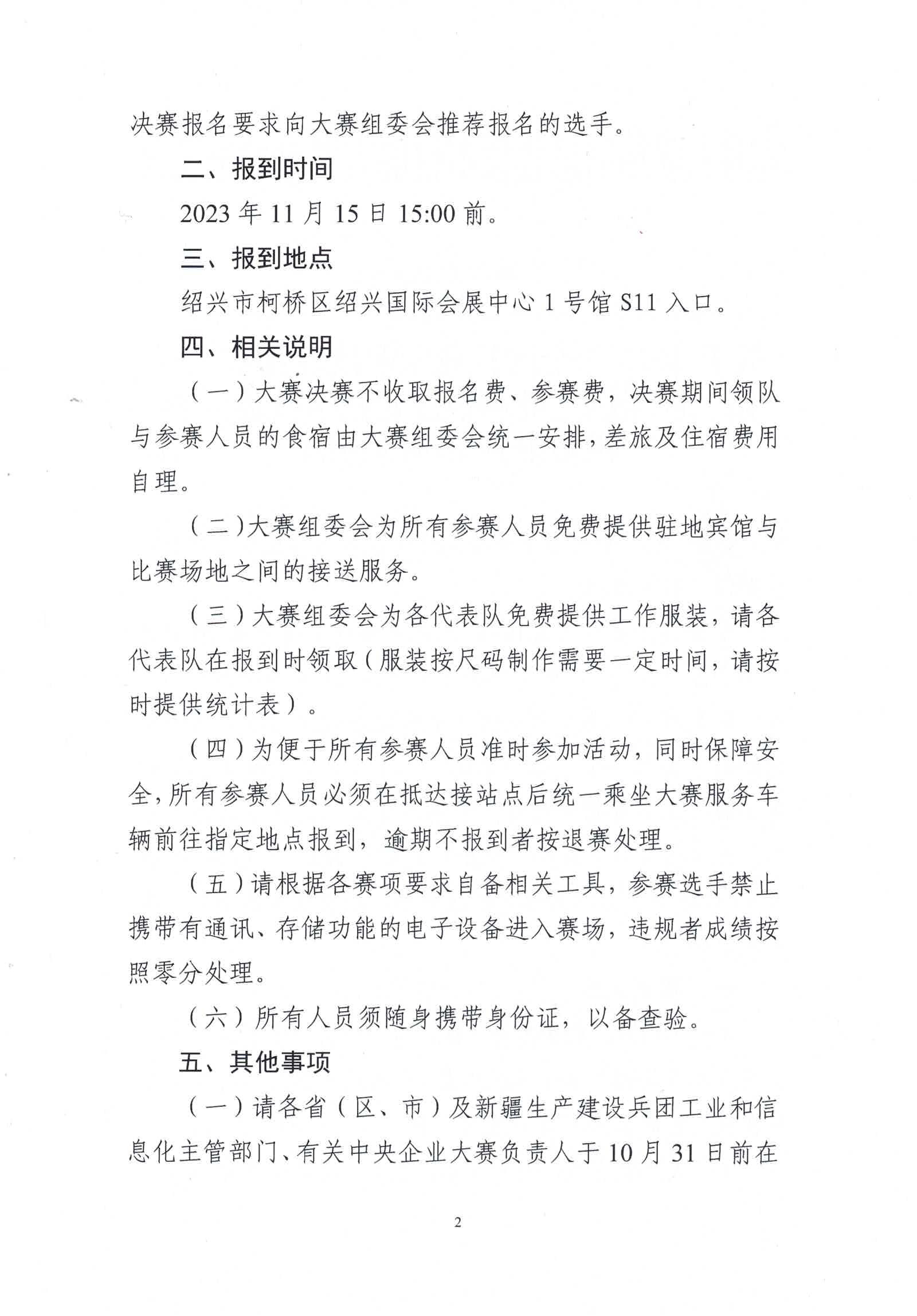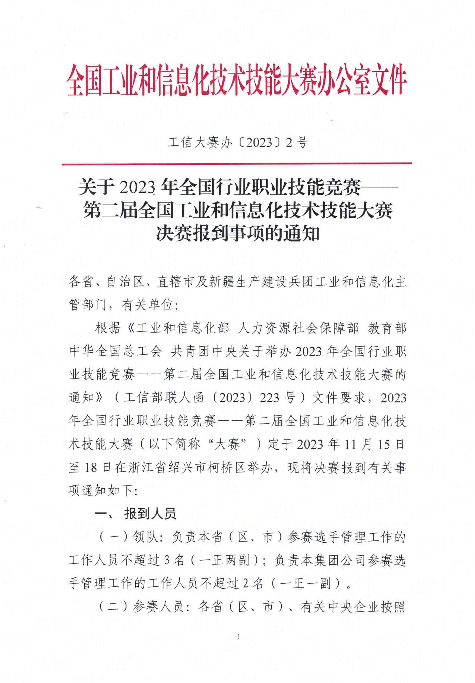 關(guān)于2023年全國行業(yè)職業(yè)技能競賽——第二屆全國工業(yè)和信息化技術(shù)技能大賽決賽報到事項的通知