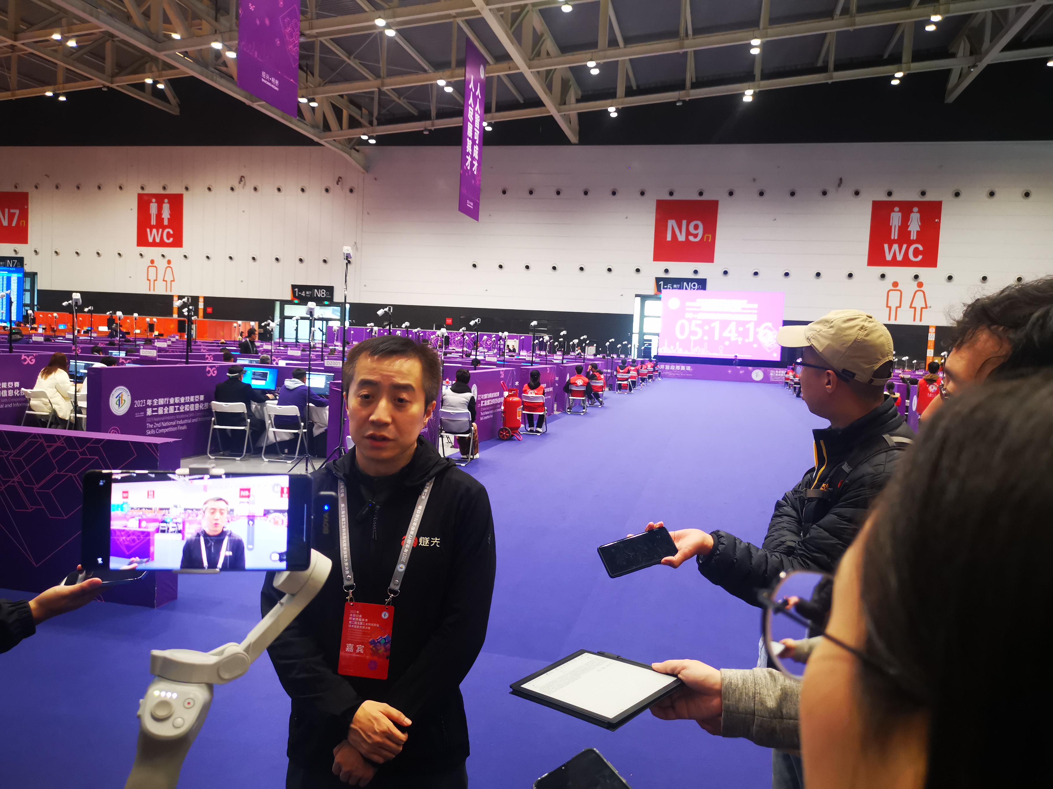 11月17日,在由工業(yè)和信息化部、人力資源社會(huì)保障部、教育部、中華全國總工會(huì)、共青團(tuán)中央共同主辦的2023年全國行業(yè)職業(yè)技能競賽——第二屆全國工業(yè)和信息化技術(shù)技能大賽(下稱“技能大賽”)決賽現(xiàn)場,5G+虛擬現(xiàn)實(shí)開發(fā)應(yīng)用賽項(xiàng)正緊張進(jìn)行中,參賽選手不斷對(duì)頭顯設(shè)備進(jìn)行調(diào)試,按照要求設(shè)計(jì)場景。
